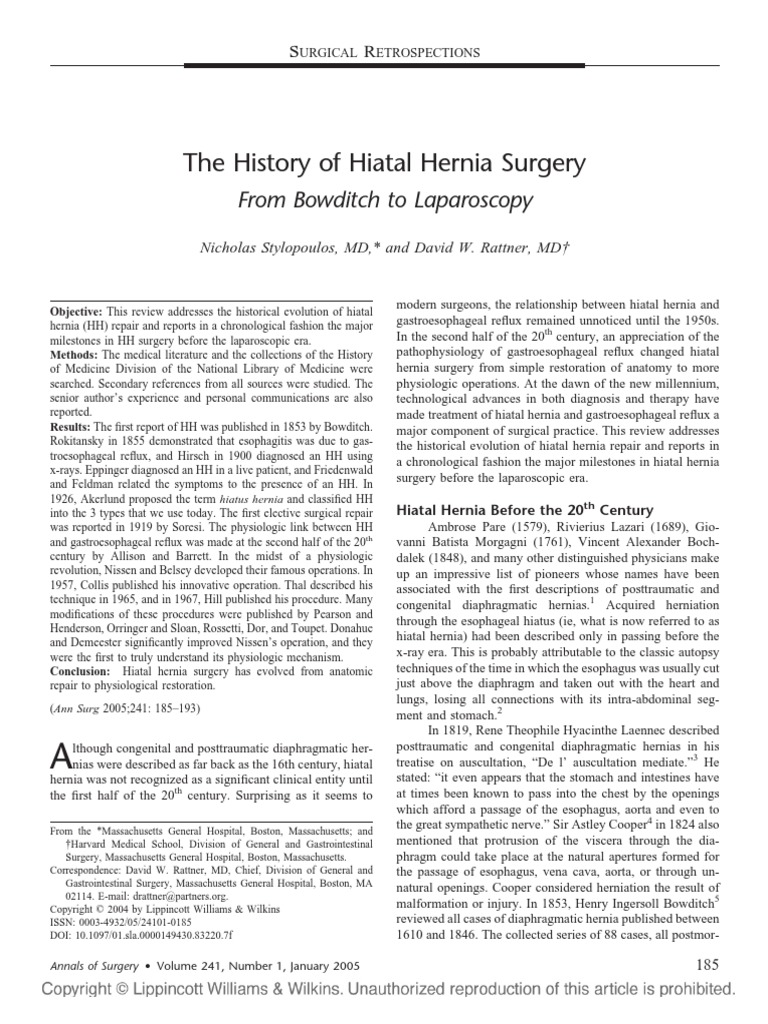 The History Of Hiatal Hernia Surgery From Bowditch To Laparoscopy